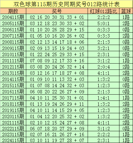 福彩双色球第2025115期历史同期王守礼012路奖号遗漏分析:
